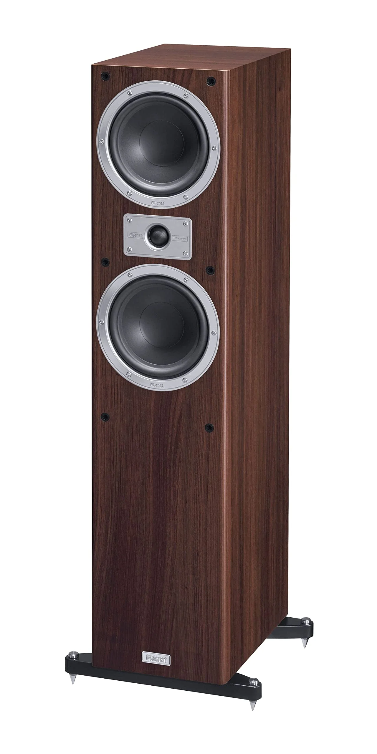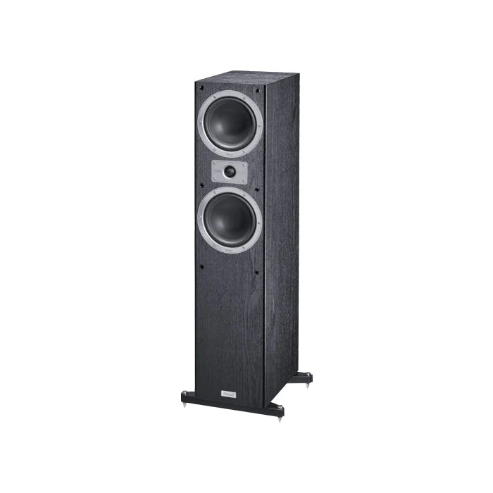 Compact floor-standing loudspeaker with high-quality finish and high-performance components