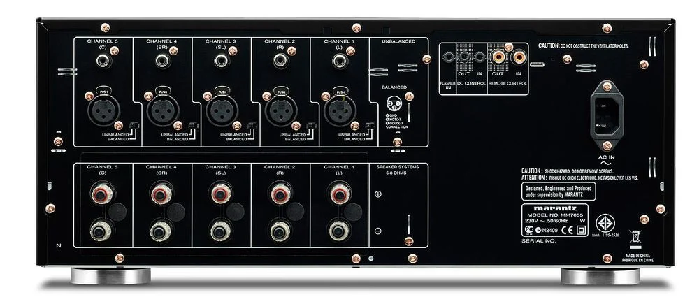 The MM7055 power amplifier produces 140 watts of high current output from each of its five channels.