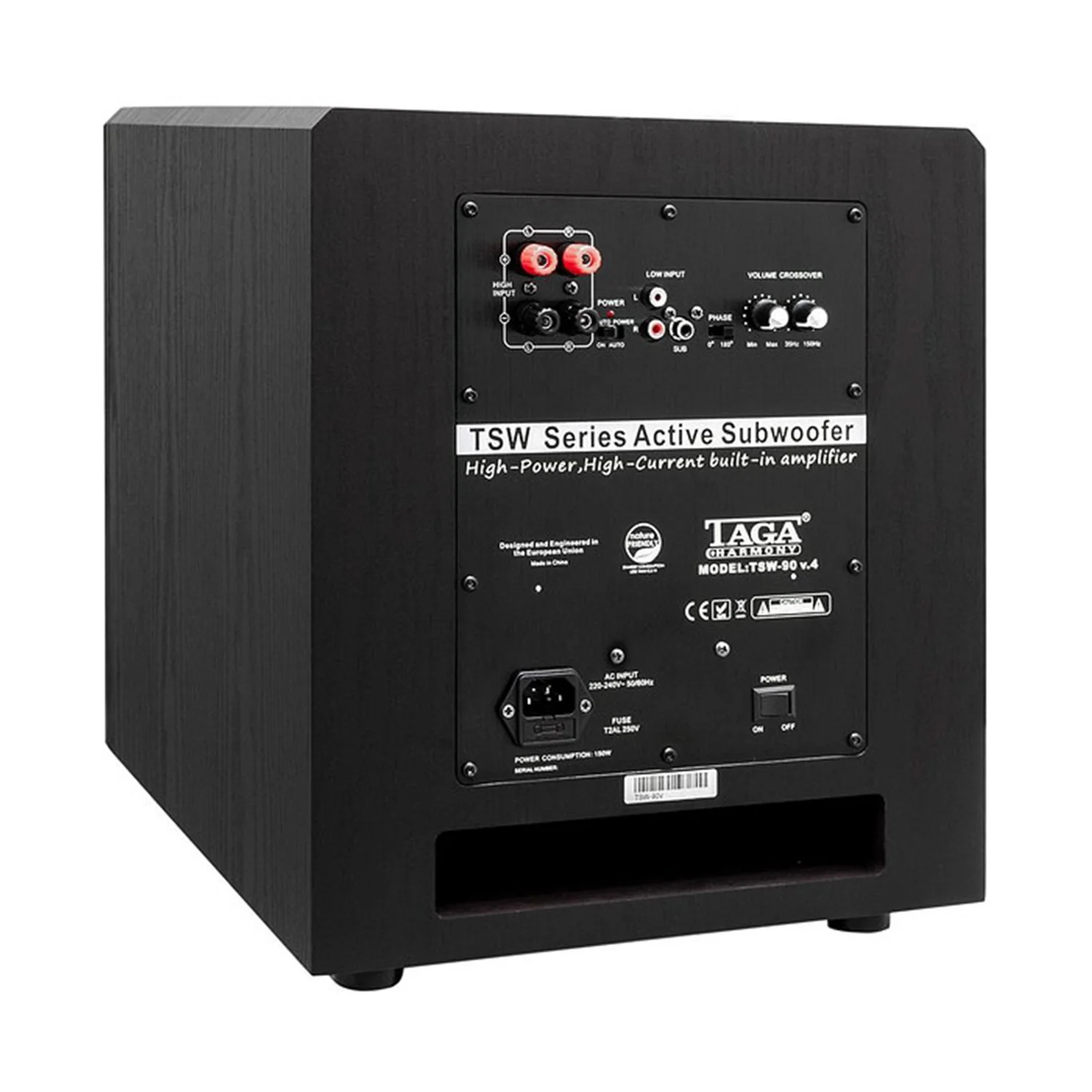 The TAGA Harmony TSW-90 v.4 is a high-performance 10″ powered subwoofer engineered to deliver deep, impactful bass with exceptional speed and control. Featuring a built-in high-current amplifier and a rear slotted bass reflex port, this subwoofer is designed to bring explosive low-frequency energy to both music and home-theatre systems.